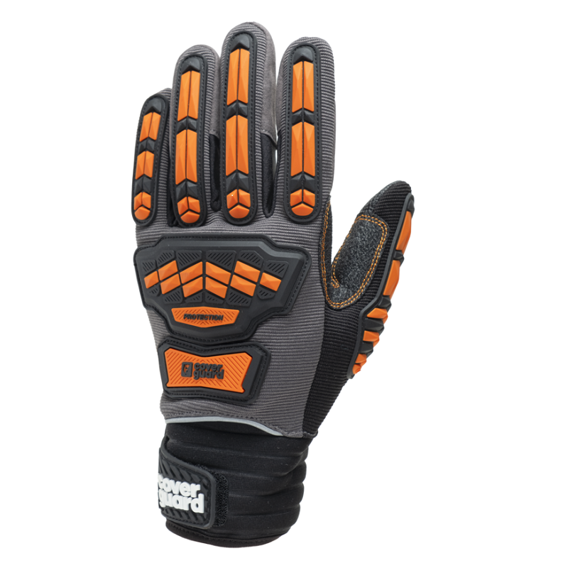 Перчатки EUROSTRONG MX600, серая подкладка из микрофибры, серая подкладка из полиэстера, противоударные вставки из термопластичного каучука на тыльной стороне ладони и пальцах, усиленная область между большим и указательным пальцами, усиленная ладонь с амортизирующей зоной, кончики большого, указательного и среднего пальцев со встроенной полиуретановой накладкой для сенсорного экрана, неопреновое запястье с застежкой-липучкой.