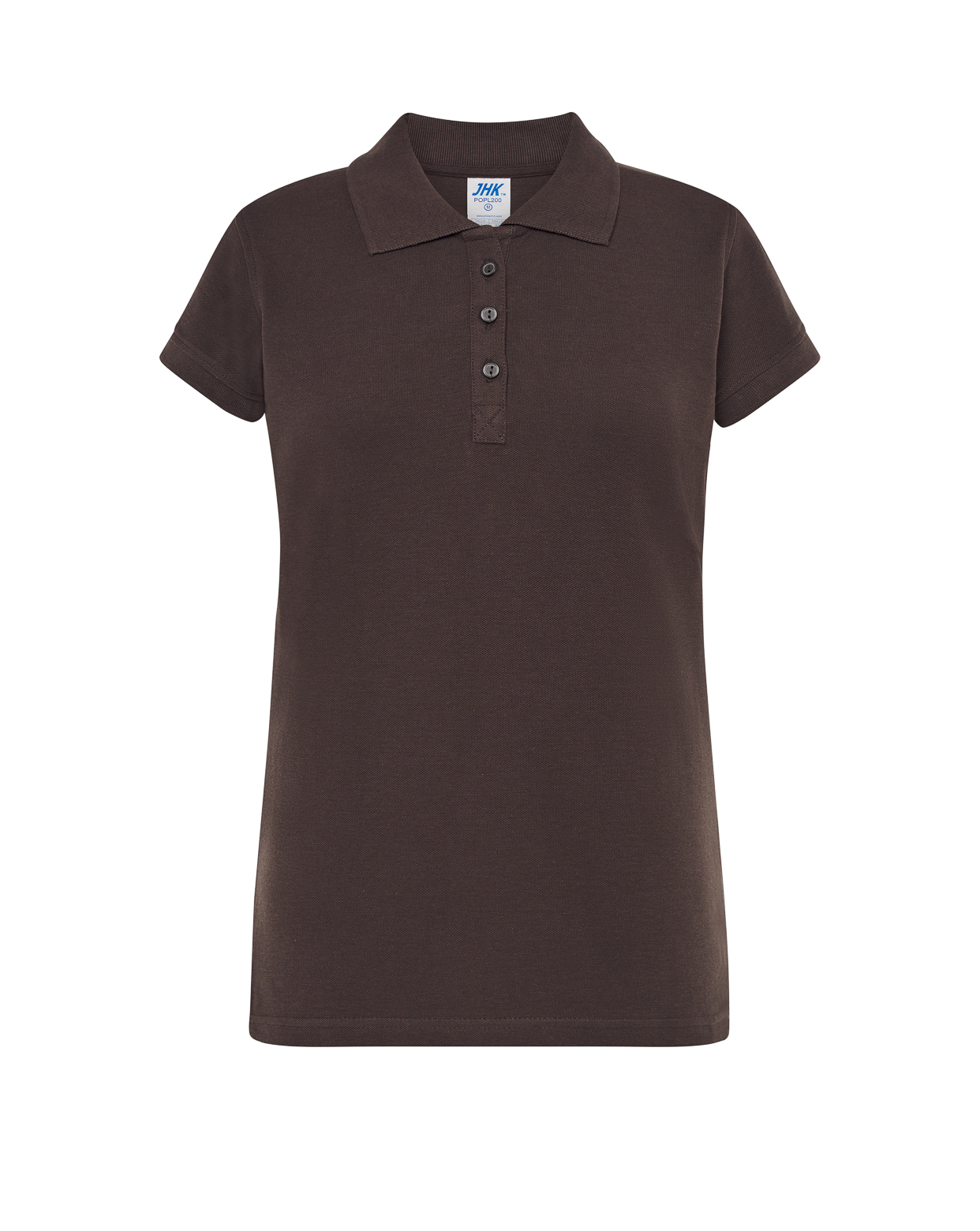 Классическая женская футболка-поло с короткими рукавами небольшими боковыми разрезами и с застежкой на 3 пуговицы.
