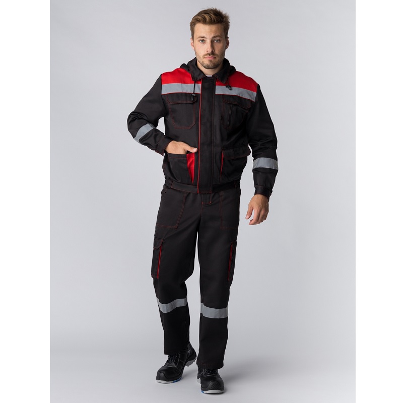 Рабочий костюм мужской «Титан СОП с капюшоном» состоит из двух элементов: мужская рабочая куртка + полукомбинезон рабочий. Спецодежда мужская оснащена широкими светоотражающими полосами 50 мм, благодаря чему подходит для работы в местах с плохим освещением. Костюм изготовлен в соответствии с ГОСТ из плотного материала с водоотталкивающей пропиткой. Укороченная куртка рабочая на молнии удобна в работе и отличается длительным периодом эксплуатации. Защиту от осадков и ветра обеспечивают съемный капюшон с регулировкой по лицу и ветрозащитная планка, застегивающаяся на кнопки. Рабочий полукомбинезон на бретелях с регулировкой по длине и поясом на резинке отлично садится по фигуре. Униформа дополняется удобными объемными карманами, что помогает сохранять в целости записи и расходники.