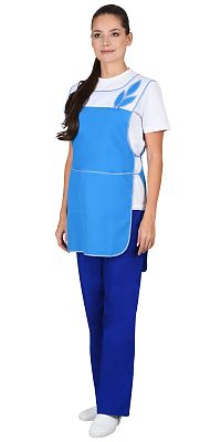 Фартук имеет большой карман с зональным делением. Края и карманы отделаны белой цветной полоской. Изготовлен из полиэстера. Ткань не вызывает аллергических реакций и имеет отличные гигиенические свойства. Она прекрасно пропускает воздух, позволяя коже дышать. Практически не впитывает влагу и быстро сохнет. Высокая плотность гарантирует пыленепроницаемость одежды, высокую износостойкость и долговечность. Отличительными характеристиками являются удобство и комфорт.
