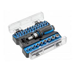 Набор, состоящий из отвертки с храповым механизмом, 25 сменных наконечников и 9 головок. Набор упакован в практичный органайзер для удобного хранения. Необходим для каждого профессионала. наконечники для отвертки изготовлены из высококачественной легированной стали S2 головки изготовлены из...