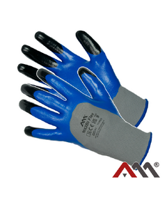 Утеплённые пятипалые защитные перчатки из серого трикотажного полотна, покрытые гладким синим латексом (на 3/4 поверхности перчатки), кончики пальцев дополнительно покрыты чёрным вспененным шероховатым латексом. С эластичной манжетой. Прочный, устойчивый к истиранию и разрывам. Характеристики...