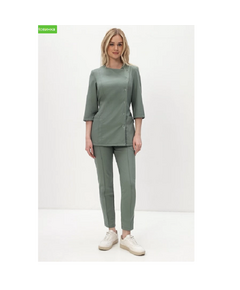 Современный медицинский халат прямого силуэта с потайной застежкой на кнопки. Особый крой рукавов дает дополнительный комфорт в движении. В среднем шве спинки – шлица. Накладные карманы вместительные за счет своей конструкции, при этом держат форму, не провисают. Длина по среднему шву спинки 99...
