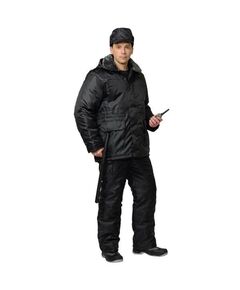 Куртка на молнии и ветрозащитным клапаном, съёмным капюшоном, накладными и прорезными карманами. Притачной меховой воротник, кулиска по линии талии, трикотажные манжеты внутри рукавов обеспечивают дополнительную теплозщиту. Брюки с центральной застёжкой-молнией и двумя боковыми накладными...