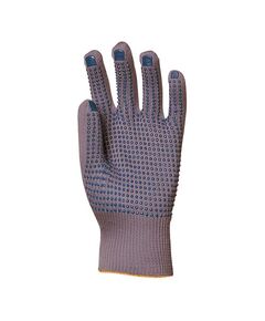 Перчатки выполнены из прочного серого трикотажа (нейлон 100%), покрытого синими точками из поливинилхлорида (ПВХ) в области ладоней. • Нейлон обеспечивает легкость, долговечность, износостойкость и высокую прочность перчаток. • ПВХ препятствует скольжению, помогает удерживать в руках стекло,...