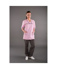 Костюм ИРИС обладает функциональностью спецодежды и стильным дизайном с приятным сочетанием цветов. Блуза розового цвета сшита в виде кимоно. По низу рукавов, полочки, краю горловины и по верхним краям карманов пришит декоративный кант серого цвета. Брюки серого цвета на поясе с эластичной...