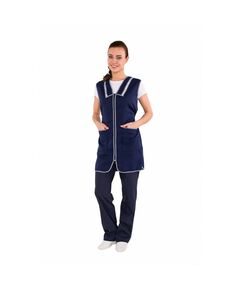Костюм ЛАЗУРЬ состоит из белой куртки с отложным английским воротником и брюками контрастного цвета. Отделка воротника и краев карманов на куртке сочетается с брюками, образуя единый ансамбль. Особенности кроя: • центральная застежка на куртке регулируется пуговицами и петлями, • втачные рукава...