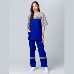 БЛУЗА - прямого силуэта длиной до бедер с разрезами по боковым швам - застежка с отрезной планкой от горловины до шва притачивания кокетки переда на две металлические кнопки - полочки с отрезными кокетками из отделочной ткани - на кокетки настрочена светоотражающая полоса (далее СОП) шириной...