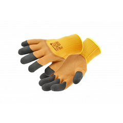 Утеплённые пятипалые защитные перчатки из серого трикотажного полотна, покрытые гладким синим латексом (на 3/4 поверхности перчатки), кончики пальцев дополнительно покрыты чёрным вспененным шероховатым латексом. С эластичной манжетой. Прочный, устойчивый к истиранию и разрывам. Характеристики...