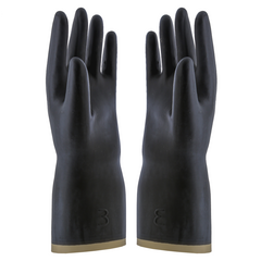 Усиленные резиновые технические КЩС перчатки с улучшенными свойствами. Защита от кислот и щелочей с более высокими концентрациями, чем по требованиям ГОСТ для КЩС перчаток + защита от нефти и нефтепродуктов Двухслойная резиновая перчатка (внутренний слой - оранжевый, наружный - чёрный),...