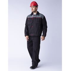 Куртка короткая с притачным поясом, центральной застежкой на пуговицы; с верхним и нижними накладными карманами. Рукава двухшовные с манжетами на пуговицах, с отложным воротником. Полукомбинезон прямого покроя, с застежкой гульфика и в правом боковом шве на пуговицы, с накладными карманами на...