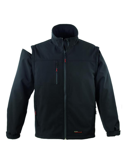 Куртка имеет 2 внешних кармана внизу и 1 на груди. Манжеты эластично закрываются на липучке. Изготовлена из софтшелла с флисом. Софштелл представляет собой практичный, мягкий на ощупь многослойный материал. В его основе – синтетические волокна. Среди основных свойств достаточно легкого по весу и компактного при сложении материала первостепенное значение имеют непромокаемость (благодаря специальной пропитке ткань софтшелл способна отталкивать влагу), грязеотталкивающие свойства, защита от порывов ветра, высокая воздухопроницаемость, отсутствие «парового эффекта», хорошая теплоизоляция, эластичность.