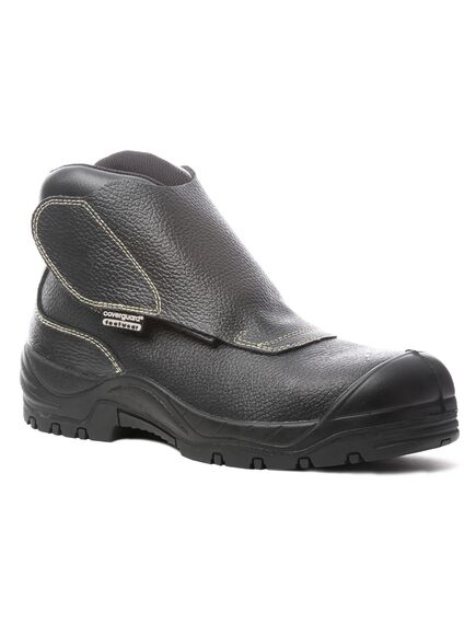 Ботинки для сварщика COVERGUARD QUADRUFITE S3 SRA HRO – мужские рабочие ботинки для сварочных работ из натуральной кожи, которые отлично подойдут для зимнего периода. Широкая липучка, на которую застегиваются ботинки, защитит от капель расплавленного металла и позволит быстро снять обувь в случае необходимости. Подошва из полиуретана и нитрила защитит от высоких температур: она устойчива к контактному нагреванию вплоть до 300°С. Она также обладает антистатическими свойствами, не разрушается под воздействием масел, кислот и щелочей, не скользит на влажных керамических поверхностях. Они отлично подходят для профессиональных работников, желающих обеспечить комфорт и безопасность для своих ног. Носовая часть ботинка защищена специальной композитной вставкой. Ботинки имеют приглядный дизайн и привлекательный внешний вид. Наши ботинки COVERGUARD QUADRUFITE S3 SRA HRO имеют приемлемую цену, поэтому вы можете купить рабочие ботинки мужские по доступной цене.
