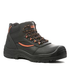 Стильные черные ботинки с оранжевыми вставками обладают высокой степенью защиты и подходят для работы даже в тяжелых производственных условиях. Благодаря качественным материалам и продуманному дизайну они надежно защитят от возможных травм при: • падении тяжелых предметов (весом до 20 кг с...
