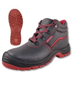 защитная обувь со стальным носком и стелькой • топливостойкая подошва из ТПУ • дышащая подкладка • поглощение энергии каблуком • верх из водонепроницаемой кожи