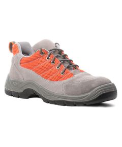 Полуботинки EURO PROTECTION SPINELLE изготовлены из серой замши с оранжевыми вставками из оранжевого полиэстера. • Материалы верха, дышащая сетчатая подкладка, а также три вентиляционных отверстия на внутренней стороне ботинок обеспечивают естественный воздухообмен и отведение пара. Ноги...