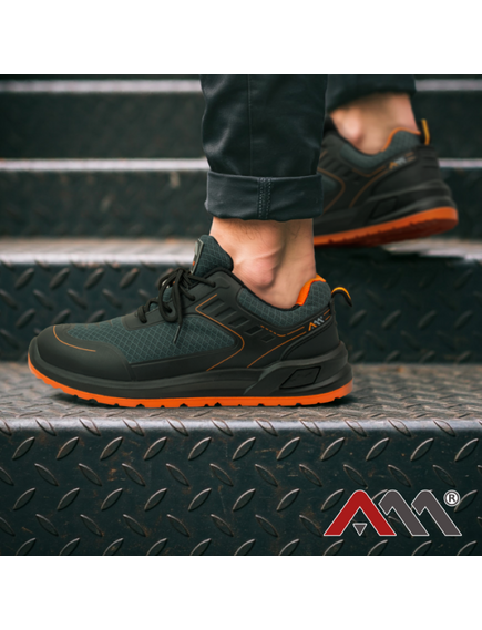Полуботинки с привлекательным современным дизайном вязаный серый цвет, с металлическим подъемником, обеспечивающим защиту от удара с энергией 200 Дж и от сжатия при сжимающей нагрузке с силой 15 кн. - изготовлен из прочного трикотажа серого цвета, усиленного покрытием из ТПУ и дополнительной жесткости в области пятки, - обувь на шнуровке, - рельефная подошва Pu / Pu с двойной плотностью в черно-оранжевом цвете, установка прямым впрыском, устойчивая к дизельному топливу, бензину и другим органическим растворителям, - защищает от скольжения, - kомфортовая подкладка из дышащей ткани черного цвета, - мягкий язычок и воротник из текстильной ткани для повышения комфорта использования, - сменная вставка.
