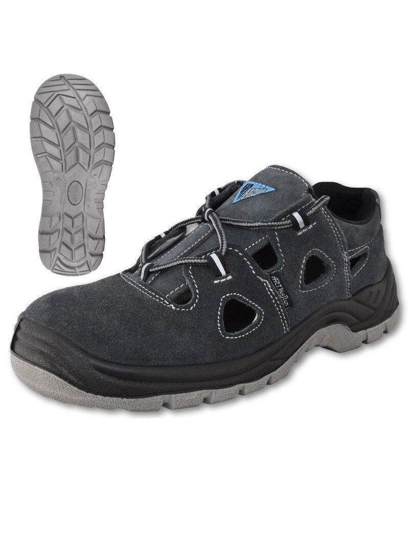 Эти сандалии с верхом из замшевой воловьей кожи обеспечивают высокую степень защиты от травм на производстве. • Удобная шнуровка позволяет с легкостью регулировать прилегание обуви, чтобы она не натирала в процессе ходьбы. • Декоративные отверстия и натуральные материалы верха способствуют естественной вентиляции и отведению пота, сохраняют ноги сухими. • Металлический носок защищает пальцы ног от ударов с силой до 200 Дж (равняется падению груза весом 20 кг с высоты 1м) и от разрушения с усилием 15 кН (равно грузу весом до 1000 кг). • Двухслойная полиуретановая подошва установлена методом прямого впрыска. Это означает, что она не оторвется и не отклеится даже при высоких нагрузках на работе. Подошва также выдерживает контакт с маслами, бензином и другими органическими растворителями. Сопротивляется скольжению на влажных поверхностях и обладает антистатическими свойствами.