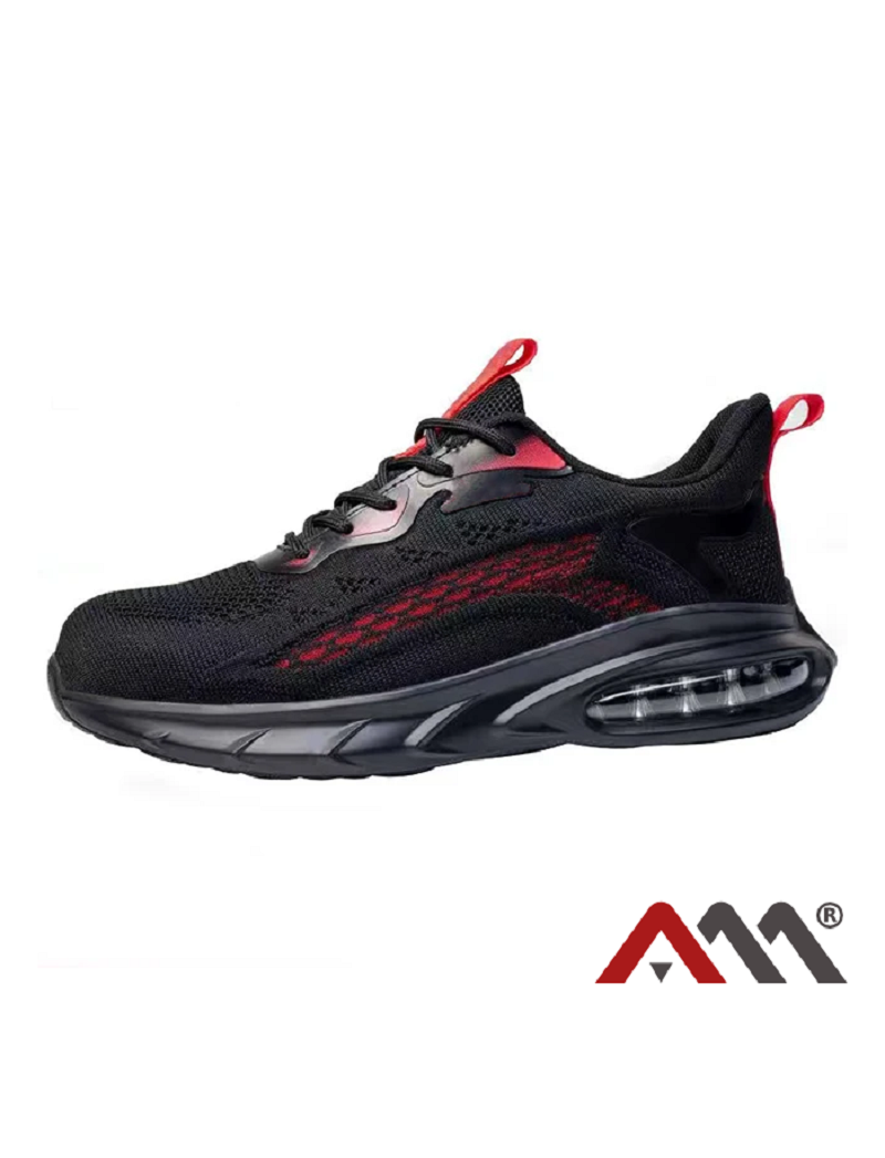 Верх выполнен из ткани Fly-knit черного и красного цветов с элементами ПВХ на шнурках и дополнительным усилением в области пятки.