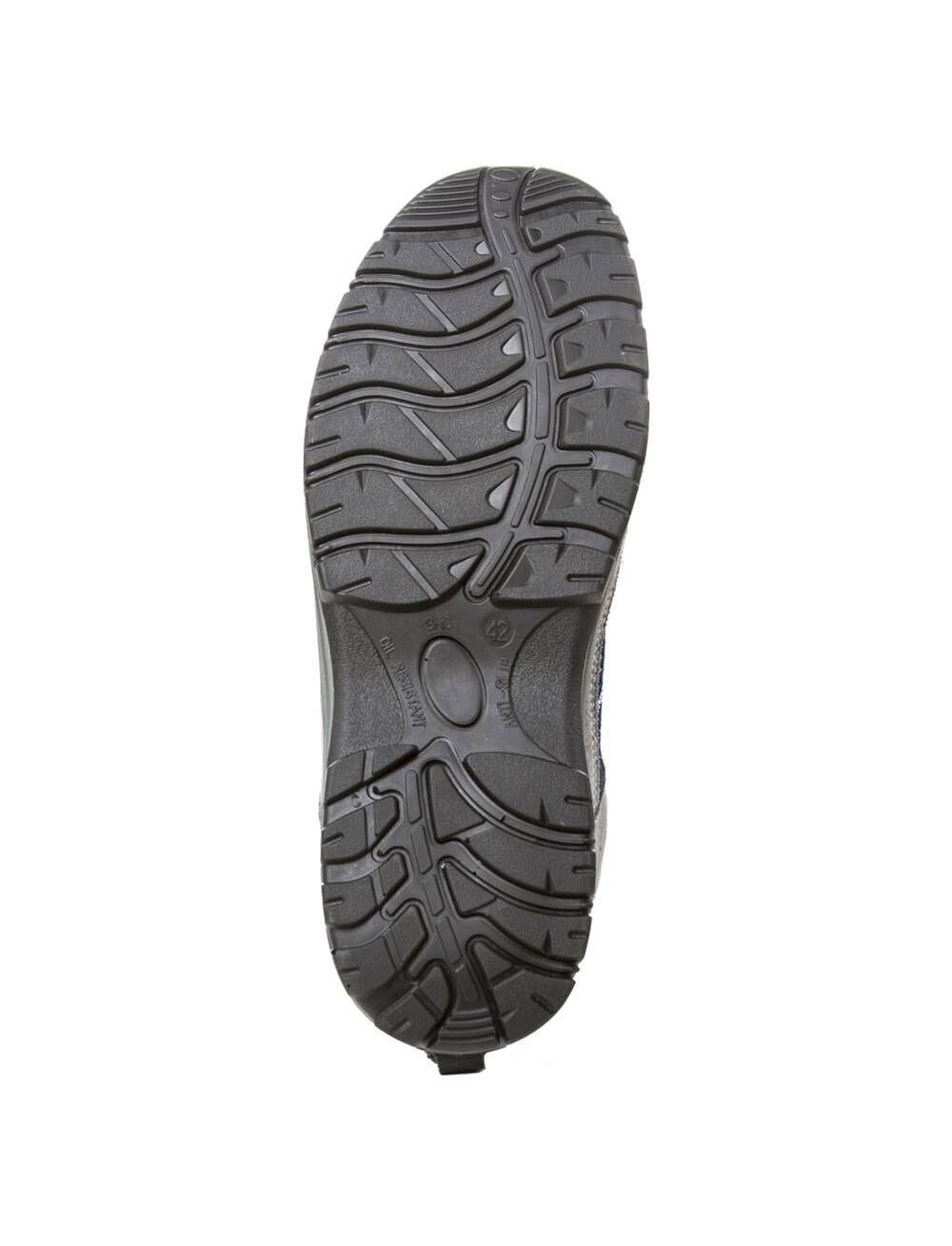 Стильная яркая модель из серой замши с синими текстильными вставками и с желтой подкладкой из сетки. • Легкий композитный подносок и эластичная текстильная стелька Wellmax® защищают ноги от механических повреждений: ударов, порезов, сдавливания тяжелыми предметами до 1000 кг. • Подошва состоит из двух слоев полиуретана. Этот материал устойчив к воздействию масел и углеводородов, а также обладает антистатическими свойствами. Еще одно его преимущество в том, что он не скользит даже мокрых керамических и стальных покрытиях. • Амортизирующий каблук снижает нагрузку на ноги и позвоночник, помогая меньше уставать, даже если весь день приходится проводить на ногах. Манжета с мягкой подкладкой, уплотненный язычок, удобная стелька и дышащая нетканая подкладка также обеспечивают полный комфорт, не натирают ноги и позволяют коже дышать.