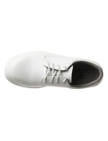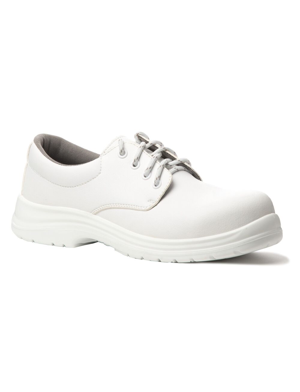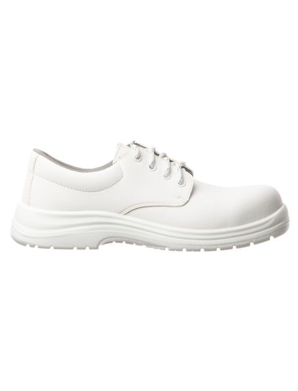 Белоснежные рабочие полуботинки COVERGUARD MOON рекомендованы в первую очередь для медиков и работников пищевой промышленности. • Верх полуботинок из дышащей микрофибры, а подкладка из мягкой воздухопроницаемой сетки. • Отсутствие металлических деталей обеспечивает легкость и гибкость обуви. Амортизирующая вставка в области пятки снижает нагрузку на суставы и позвоночник при ходьбе. • Двухслойная подошва из полиуретана устойчива к скольжению на керамических и стальных поверхностях – даже если они влажные. Она также обеспечивает полную защиту при контакте с электричеством, кислотами, щелочами и маслами, не теряя при этом своих свойств. Материалы и технологии, с помощью которых полуботинки изготовлены, помогают сохранить здоровье ног даже при эксплуатации до 24 ч. в сутки.