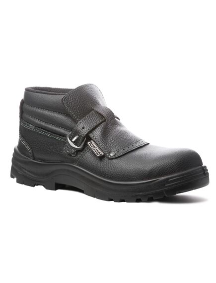 Эти ботинки обеспечивают высокую степень защиты и идеально подойдут для сварочных работ. • Верх из плотной натуральной кожи со специальной застежкой, которая предотвращает попадание воды и окалины в ботинок, а также позволяет быстро снять обувь, если есть опасность ожога. • Композитный носок защищает ноги от травм при падении тяжелых предметов (до 20 кг с высоты 1м) и сдавливании грузами (до 1000 кг). • Гибкая текстильная стелька Wellmax® предотвращает проколы. • Амортизирующий каблук уменьшает силу ударов, которые приходятся на пятку во время ходьбы, таким образом защищая колени и спину от нагрузок. Антистатическая подошва из двойного полиуретана устойчива к воздействию масел и химических веществ, отличается противоскользящими свойствами.