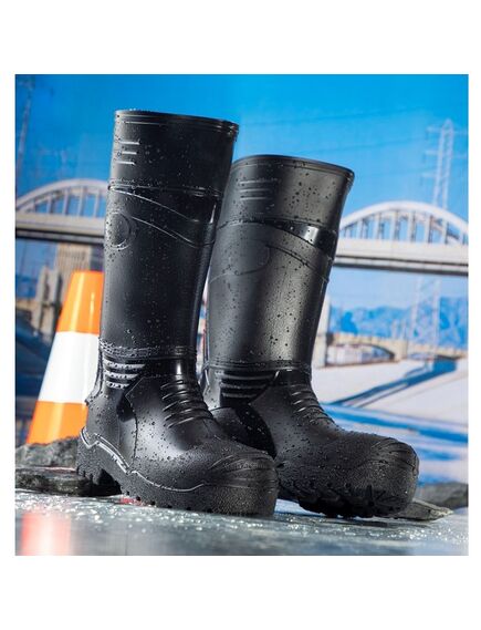 Резиновые сапоги GARDEN хорошо сидят на ноге, регулируемый выступ над пяткой облегчает их надевание. Специально адаптированная подкладка повышает комфорт при длительном ношении. Черные ботильоны имеют универсальный дизайн и доступны в размерах 39–46.