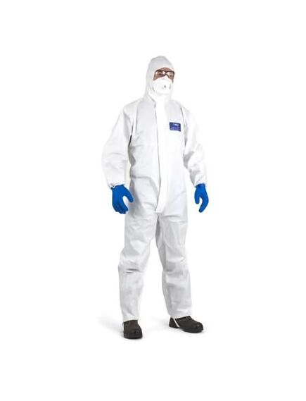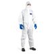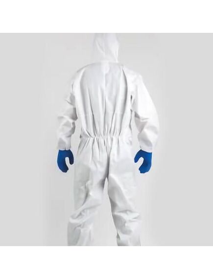 Белый комбинезон выполнен из материала с микропористой ламинированной пленкой (65 г/м²).