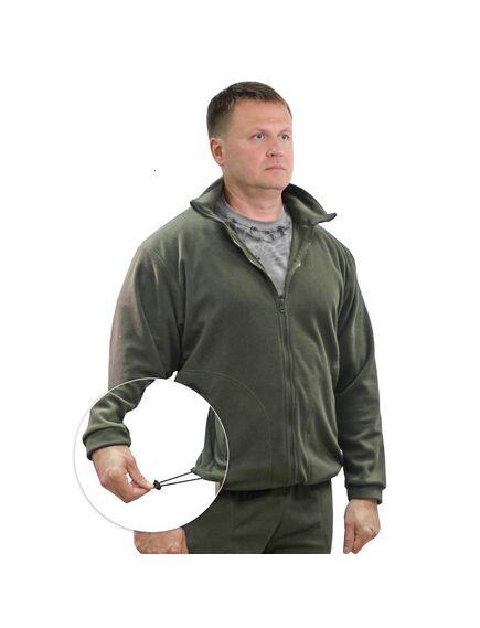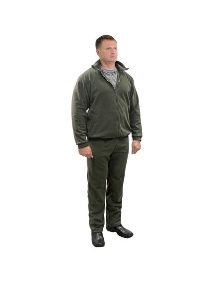 Костюм флисовый цв. Олива состоит из куртки и брюк. Куртка удлиненная, с центральной застежкой на тесьму-молнию, с двумя нижними прорезными карманами на молнии, по низу регулируется резинкой с фиксаторами по бокам, рукав длинный, втачной, на манжете. Брюки на притачном поясе, стянутом эластичной тесьмой, по бокам карманы с отрезным бочком. Данная модель флисового костюма используется для активного отдыха, а также для охоты. Рекомендуемые материалы: Флис. ГОСТ 29335-92