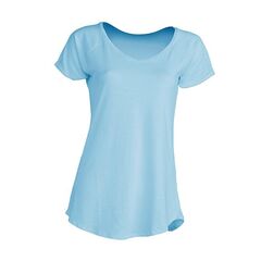 Женственная футболка нежного светло-голубого цвета приталенного кроя со скругленным низом и V-образным вырезом. • Благодаря 100% хлопку, из которого изготовлена футболка, материал обеспечивает отличную вентиляцию и отведение пота. • Благодаря очень тонкой ткани 120 г/м² в ней комфортно даже в...