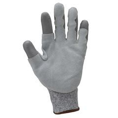 Трикотаж из полиэтилена высокой плотности и полиэстера, серое полиуретановое покрытие на ладони, кожаные накладки на ладони и пальцах, кроме большого и указательного, параарамидная строчка. Трикотажное запястье. ПРЕИМУЩЕСТВА: отличное сочетание защиты и ловкости в кончиках пальцев (указательном и...