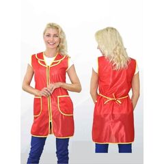 Сарафан женский укороченный прямого силуэта с центральной застежкой на молнию и горловиной с V-образным вырезом. Верхний срез боковых карманов и фигурные полуворотники декорированы контрастным кантом. Спинка без отделки, объем талии регулируется полупоясами. Все срезы сарафана обработаны...