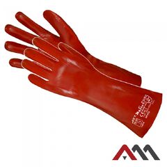 Рабочая перчатка: - целые перчатки из красного ПВХ - длина: 35 см