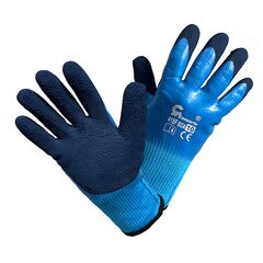 Утепленная перчатка из эластичной ткани с латексным покрытием, также на тыльной стороне руки. Нижняя сторона покрыта мягким вспененным латексом. Гибкая, удобная манжета. Утеплитель махровый.