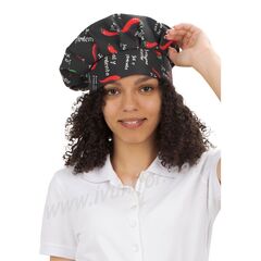 Колпак повара "Капучино" с принтом и тульей, заложенной складками. Сзади имеются завязки для удобства регулировки размера. Колпак дополняет комплект или костюм повара. К этому колпаку можно купить фартук.