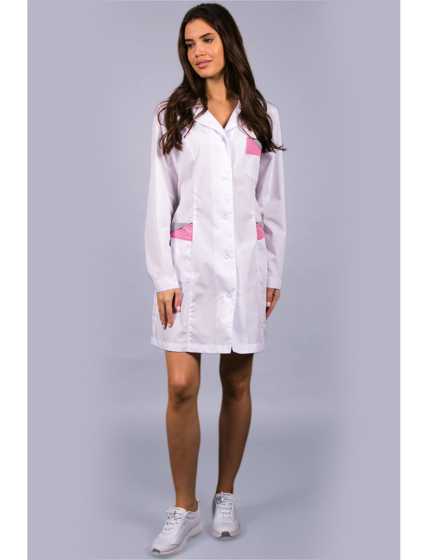 Халат ФАКЕЛ ИРИС женский белый с розовым