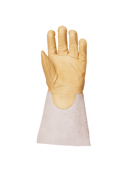 Пятипалые длинные краги состоят из телячьего спилка высшего качества. Самое распространенное средство защиты рук от загрязнений, механических повреждений, высоких температур. Перчатки имеют широкие манжеты из спилка, позволяющие при необходимости быстро сбросить их с рук. Структура перчаток позволяет максимально защитить руки, одновременно обеспечивая им комфорт. Они незаменимы в металлургии, так как способны защитить от брызг раскаленного металла и искр во время сварки. Перчатки эластичные и легкие. Данные перчатки-краги рекомендованы для сварки аргоном. Сертификат: EN 420, EN 388 (2122).