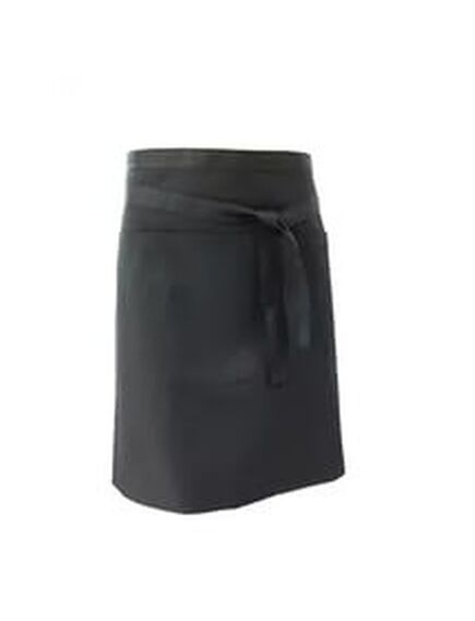 Фартук черный без грудки изготовлен из двух типов смесовых тканей твил Сатори, Lokker Primary, комфортных в носке и удобных в обслуживании, долговечных и износостойких.