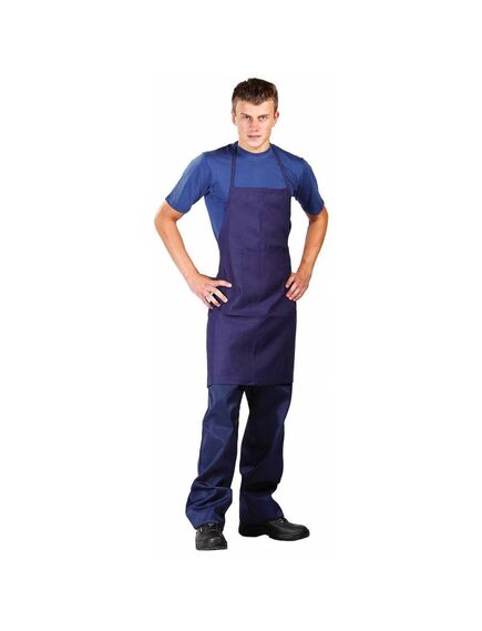 Синий фартук с нагрудником предназначен для рабочих специальностей для защиты от общепроизводственных загрязнений.