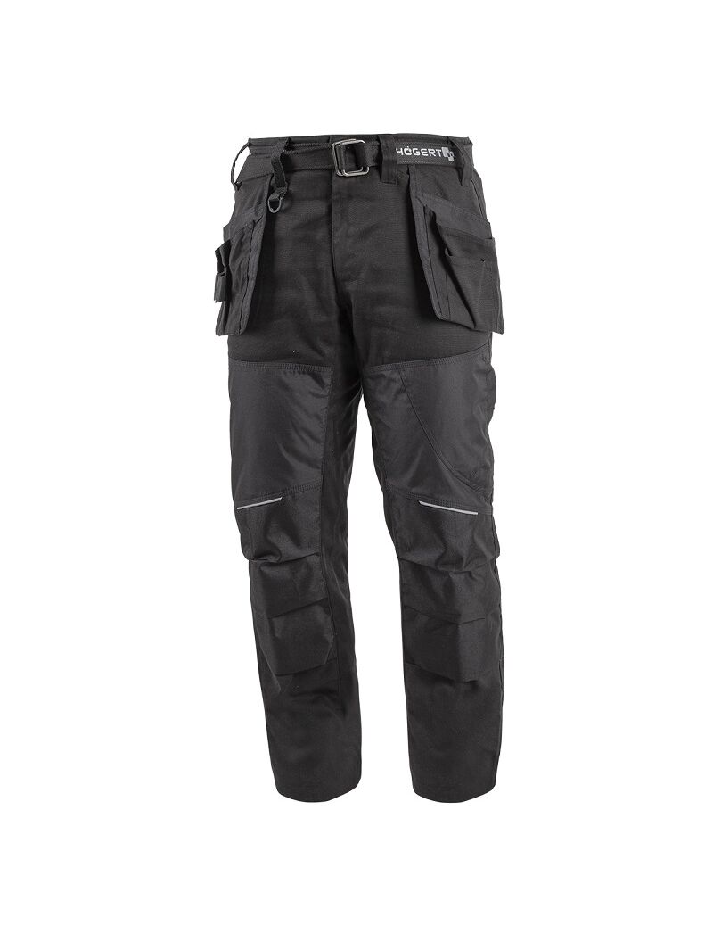 Современные брюки, изготовленные из лучших материалов, гарантирующих защиту и комфорт во всех рабочих позициях. Ткань переплетения Canvas характеризуется высокой прочностью и устойчивостью к разрыву. Брюки оснащены карманами-кобурой, которые обеспечивают достаточно места для хранения инструментов. -материал: 65% полиэстер, 35% хлопок, плотность ткани 300 г/м², -армирование Oxford 600D, полиуретановое покрытие; -с 8 карманами: – 2 верхних кармана; – 1 внутренний карман; – 2 прочных кармана для инструмента; – 1 задний карман на липучке; – 1 боковой карман на молнии; – 1 боковой карман для складной линейки; -усиление на ягодицах и на коленях; -пояс: резинки по бокам, дополнительный плетеный ремень с логотипом; -светоотражающие элементы.