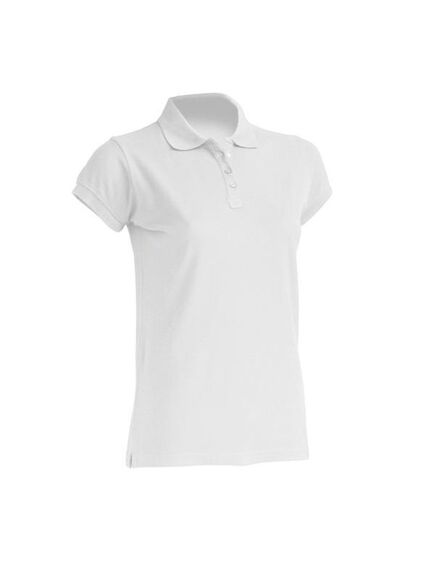 Классическая женская футболка-поло с короткими рукавами небольшими боковыми разрезами и с застежкой на 3 пуговицы.