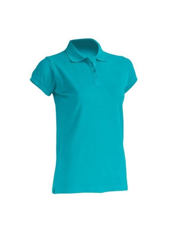Классическая женская футболка-поло с короткими рукавами небольшими боковыми разрезами и с застежкой на 3 пуговицы.