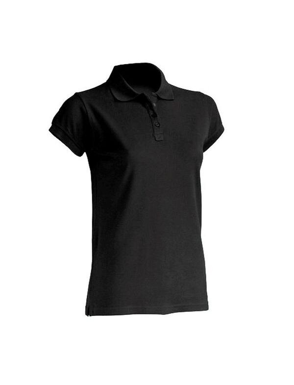 Классическая женская футболка-поло с короткими рукавами небольшими боковыми разрезами и с застежкой на 3 пуговицы.