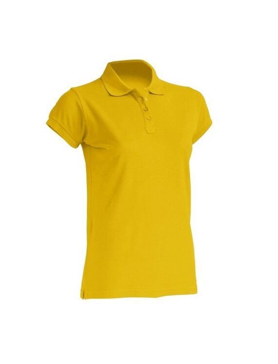 Классическая женская футболка-поло с короткими рукавами небольшими боковыми разрезами и с застежкой на 3 пуговицы.