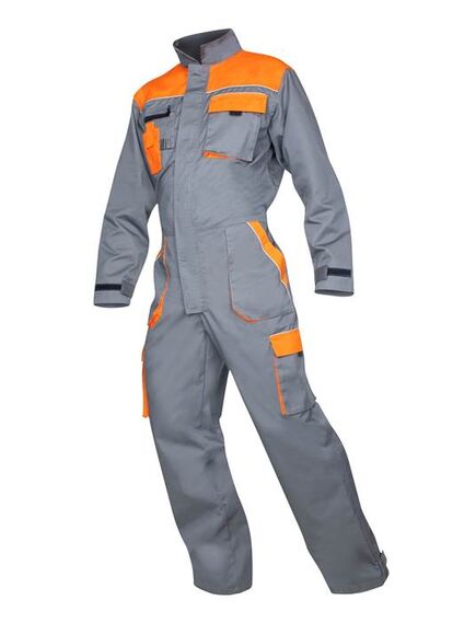 Надежная защита от загрязнения и внешних воздействий – серо-оранжевый комбинезон ARDON 2STRONG с элегантным воротником.