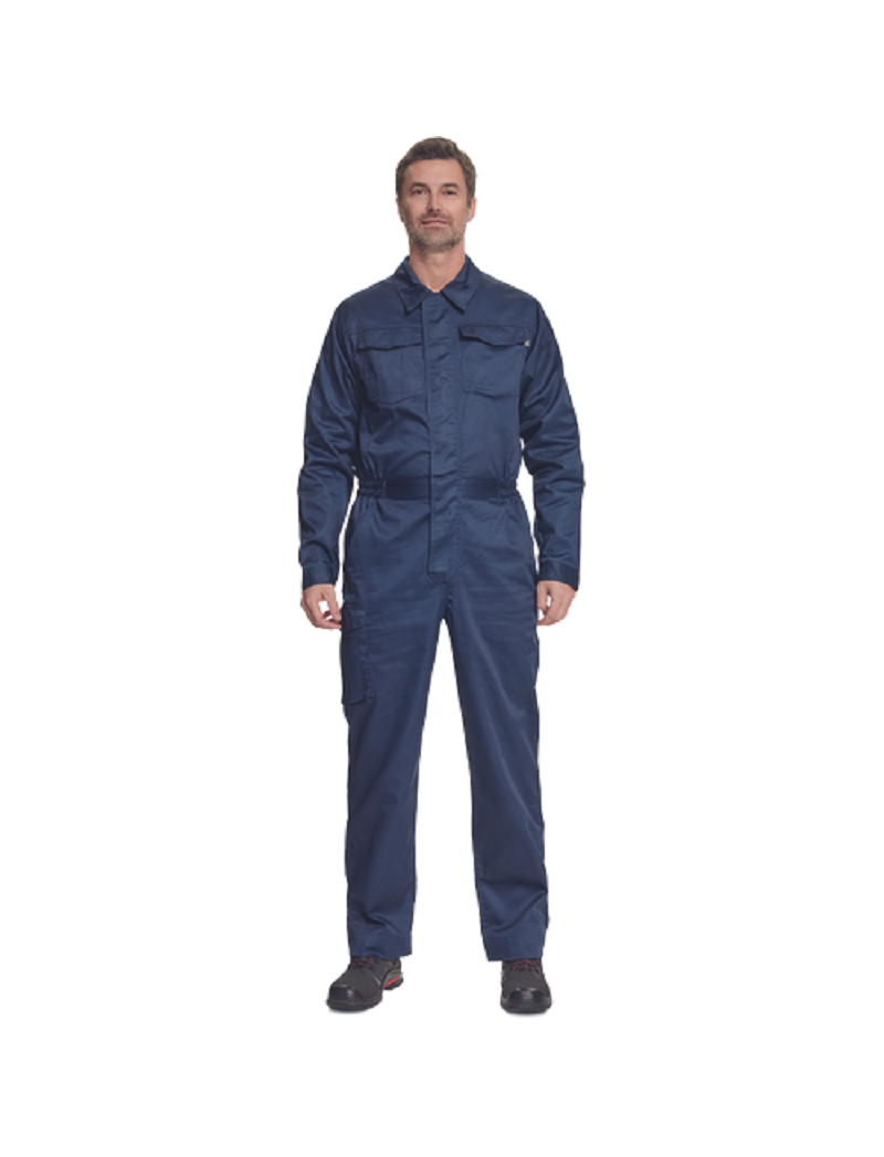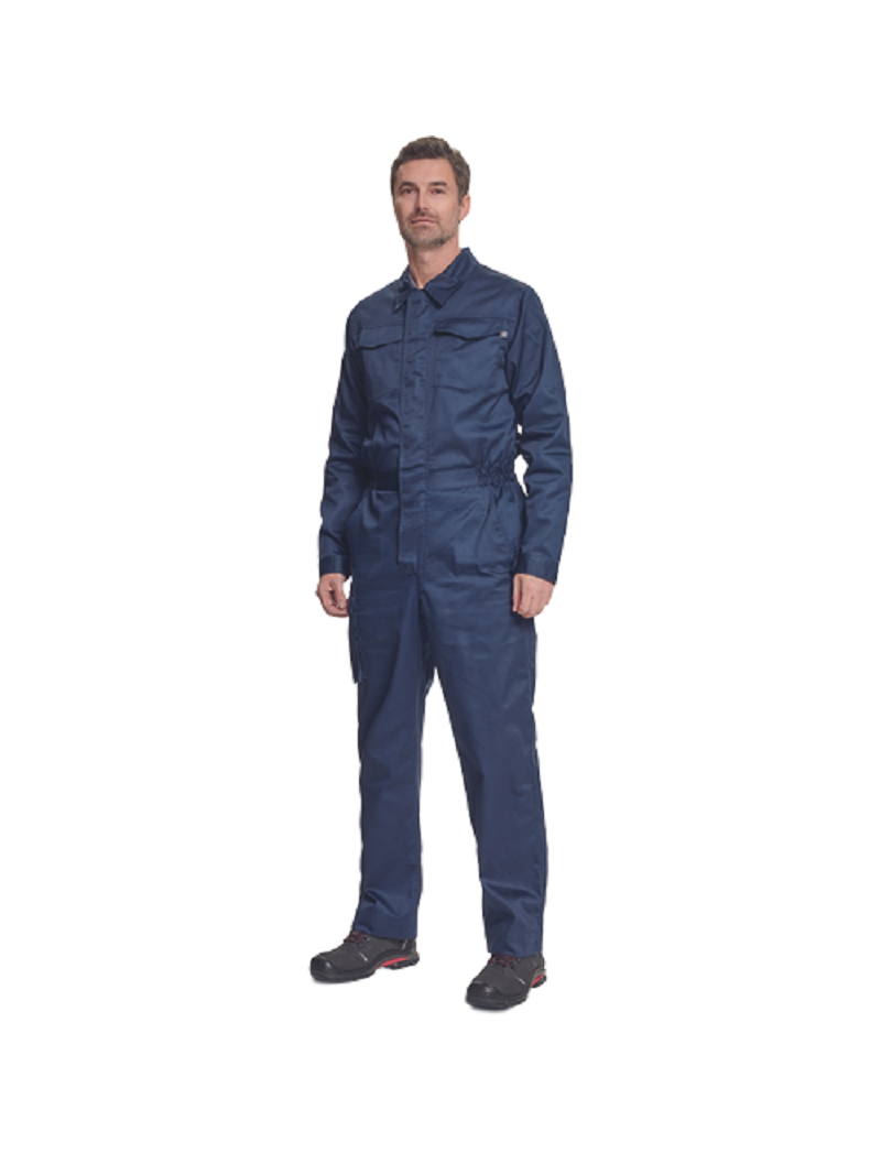мужской рабочий легкий комбинезон с застежкой-молнией, закрывающейся планкой • 2 боковых кармана, 1 карман для монет • 1 многофункциональный карман на бедрах, 2 задних кармана • 2 нагрудных кармана с клапанами • эластичные детали на талии • возможность увеличения длины штанин