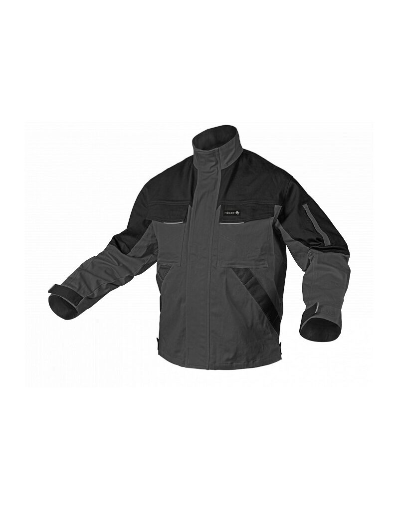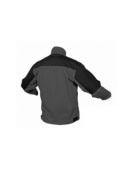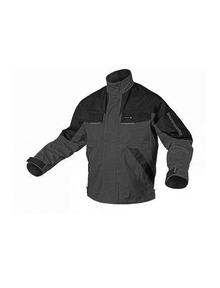 Рабочая куртка из ткани с плотным переплетением, плотность материала 270 г/м² Усиления из материала Oxford 600D Материал: 97% хлопок, 3% спандекс Застежка на молнию Оснащена 5 карманами: 2 кармана на груди с клапаном на липучке 2 нижних открытых кармана с усилениями 1 карман на левом рукаве Внутренняя жаккардовая этикетка Серый цвет с черными элементами Эластичный материал, обеспечивающий свободу движений Светоотражающие элементы - спереди и сзади куртки Верхняя часть куртки завершена воротником-стойкой Регулировка объема по низу куртки и рукавов на липучке