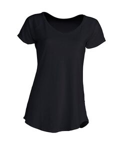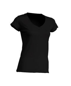 Женственная футболка черного цвета приталенного кроя со скругленным низом и V-образным вырезом. • Благодаря 100% хлопку, из которого изготовлена футболка, материал обеспечивает отличную вентиляцию и отведение пота. • Благодаря очень тонкой ткани 120 г/м² в ней комфортно даже в жаркую погоду....
