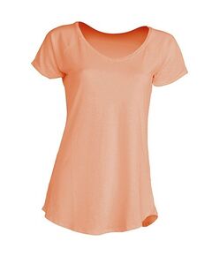 Женственная футболка нежного светло-оранжевого цвета приталенного кроя со скругленным низом и V-образным вырезом. • Благодаря 100% хлопку, из которого изготовлена футболка, материал обеспечивает отличную вентиляцию и отведение пота. • Благодаря очень тонкой ткани 120 г/м² в ней комфортно даже в...