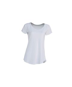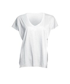 Женственная футболка белого цвета приталенного кроя со скругленным низом и V-образным вырезом. • Благодаря 100% хлопку, из которого изготовлена футболка, материал обеспечивает отличную вентиляцию и отведение пота. • Благодаря очень тонкой ткани 120 г/м² в ней комфортно даже в жаркую погоду....